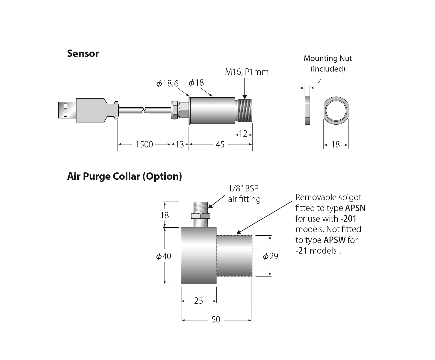 | 寸法 | Φ18mm(径) x 45mm(長さ) | |